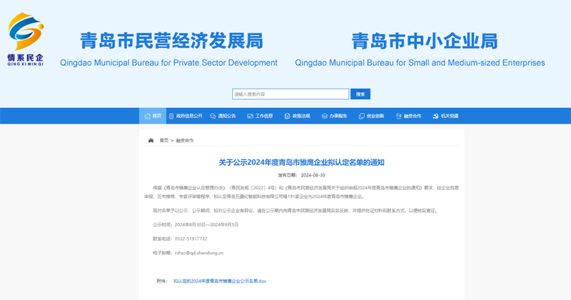 近日,青島市民營經濟發展局公示了2024年度青島市雛鷹企業擬認定名單,青島中邦新材料科技有限公司(以下簡稱“中邦科技”)憑借突出的品牌影響力、雄厚的企業實力以及卓越的創新能力,在青島眾多企業中脫穎而出。這是中邦科技在獲得“專精特新、高新技術企業、科技型中小企業”等獎項后的又一個青島市政府類獎項。