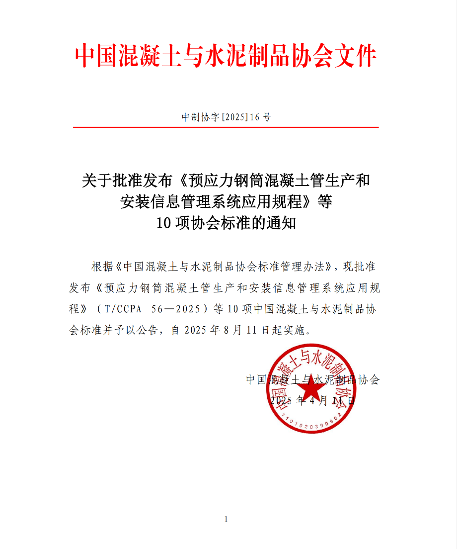 中國混凝土與水泥制品協會表示,此次發布的10項標準均聚焦行業前沿技術,將于2025年8月11日起正式實施。協會希望通過標準的推廣,推動混凝土與水泥制品行業的高質量發展。